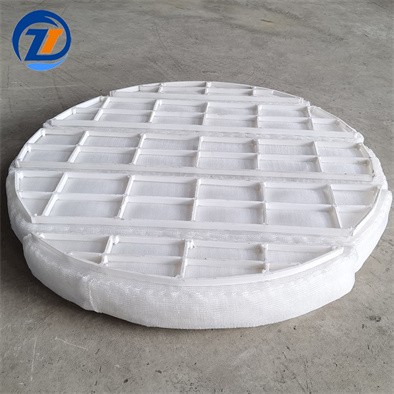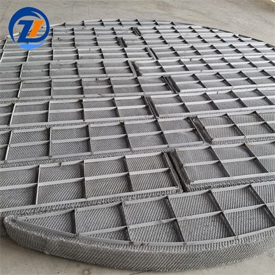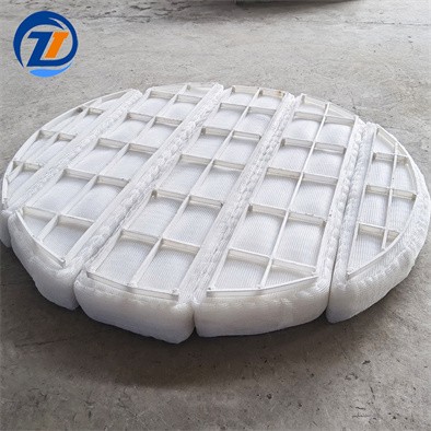 絲網(wǎng)除沫器是用來將氣體中夾帶的霧沫(霧滴)除去,回收昂貴的霧滴(貴重物料),或凈化氣體減少氣體中的雜質。絲網(wǎng)除霧器一般用φ0.10mm~φ0.28mm金屬絲或選用工程塑料(PP、PTFE、FEP、PVDF等),采用特殊的經(jīng)緯方式編織成絲網(wǎng),再將編織的絲網(wǎng)壓成有一定角度的波紋。用壓有波紋的絲網(wǎng)制成各種規(guī)格尺寸。